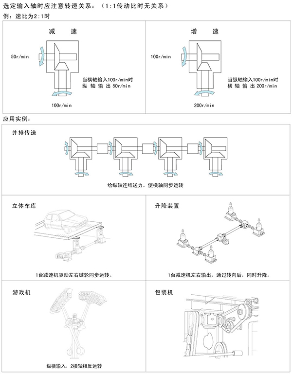 4、當(dāng)速比不為1:1時(shí),橫軸輸入、縱軸輸出為減速。縱軸輸入、橫軸輸出為增速。