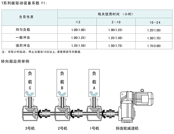 已知:3臺(tái)負(fù)載全部為196Nm,速比全部為1:1,負(fù)荷性質(zhì)為一般沖擊,每天連續(xù)工作8小時(shí)。斜齒輪減速機(jī)輸出轉(zhuǎn)速為300r/min